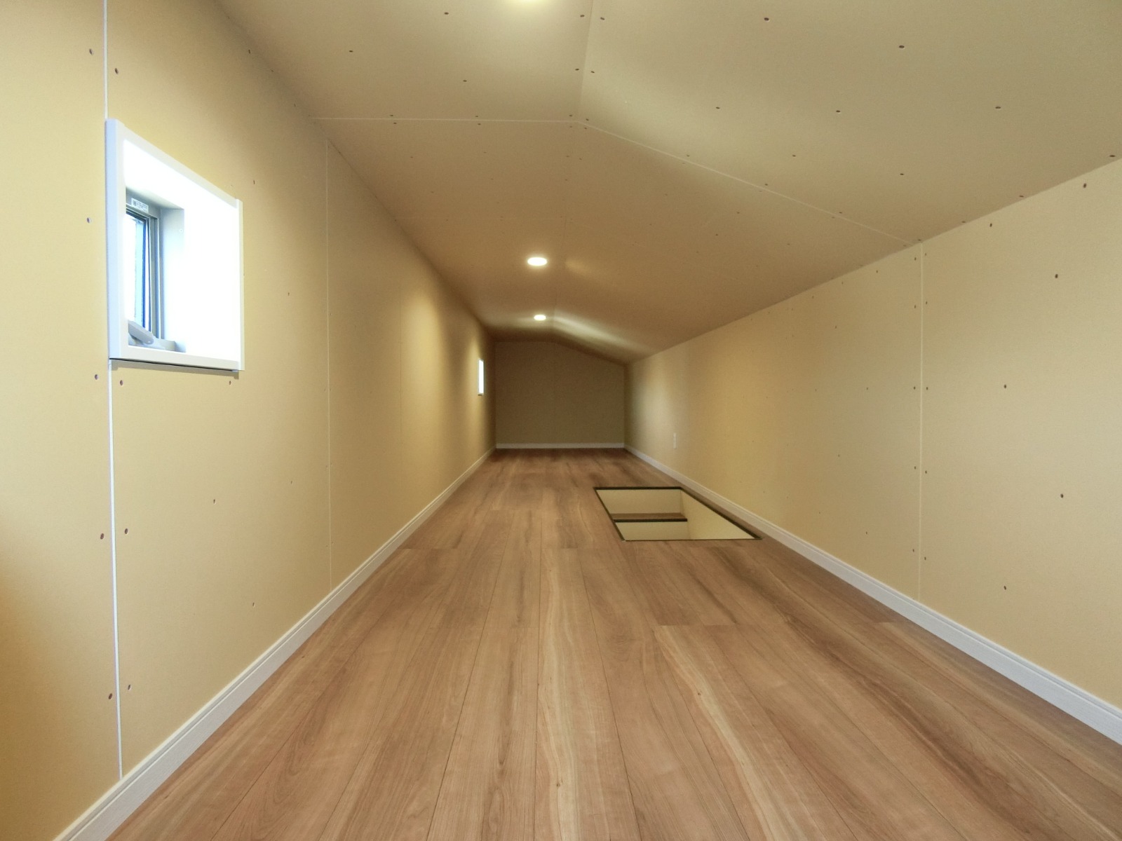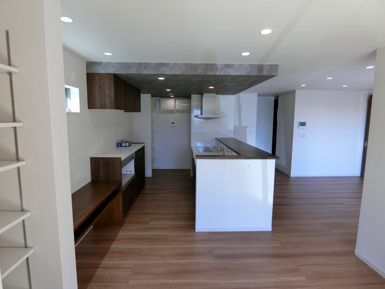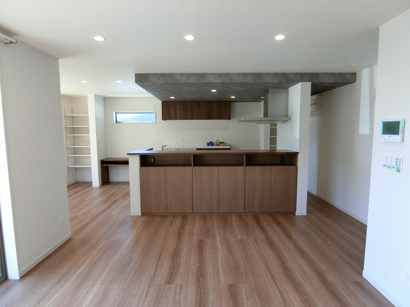二階廊下の天井には、小屋裏収納への天井収納式アプローチ階段のハッチ