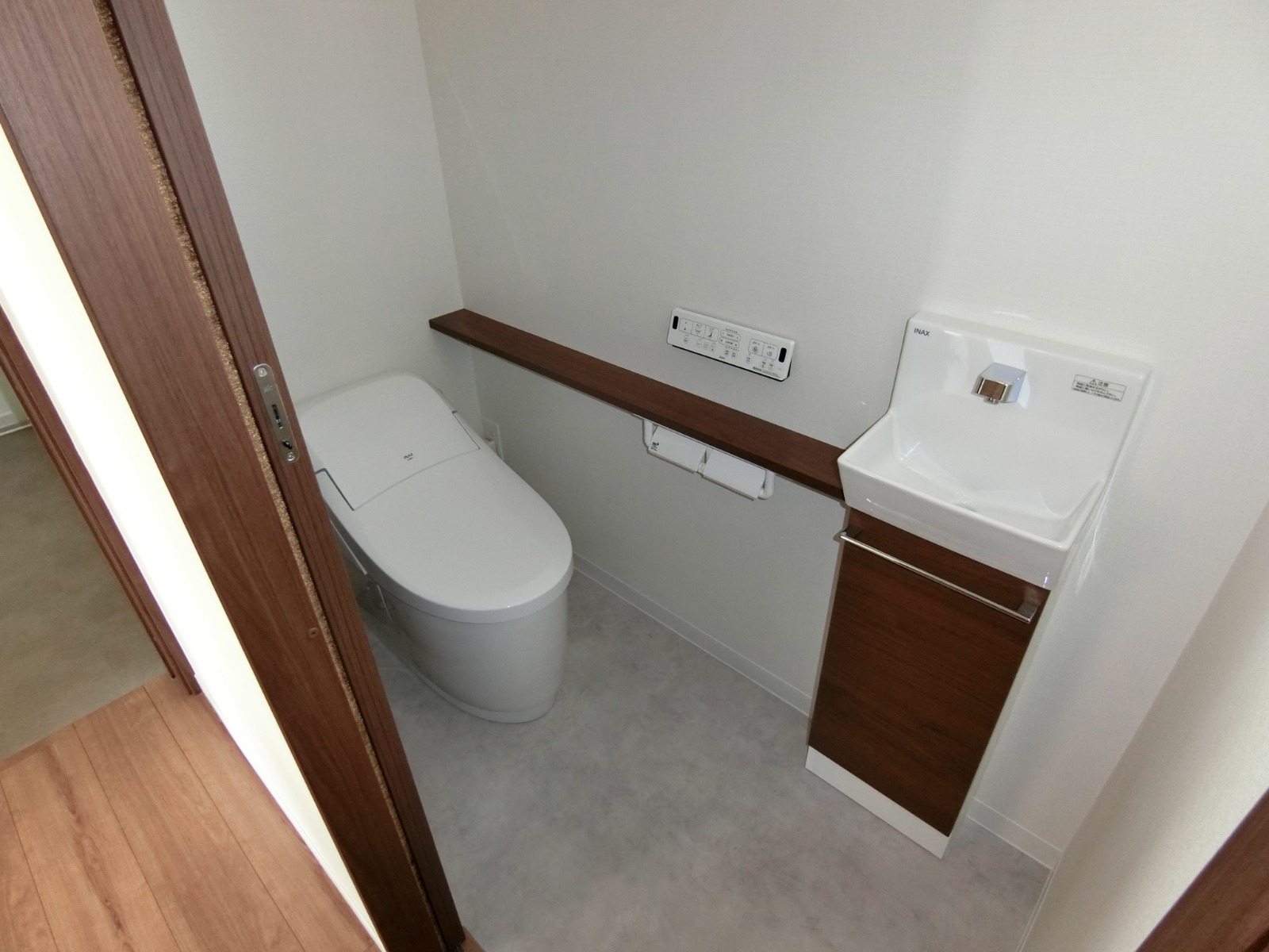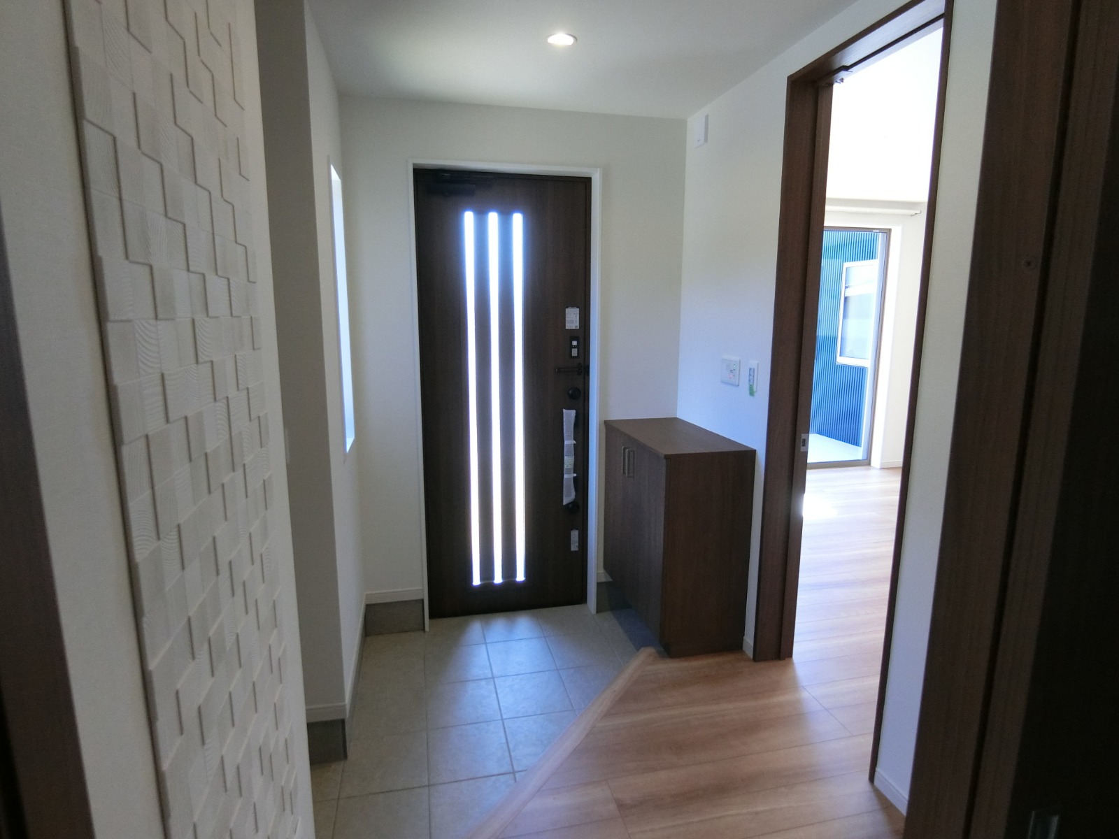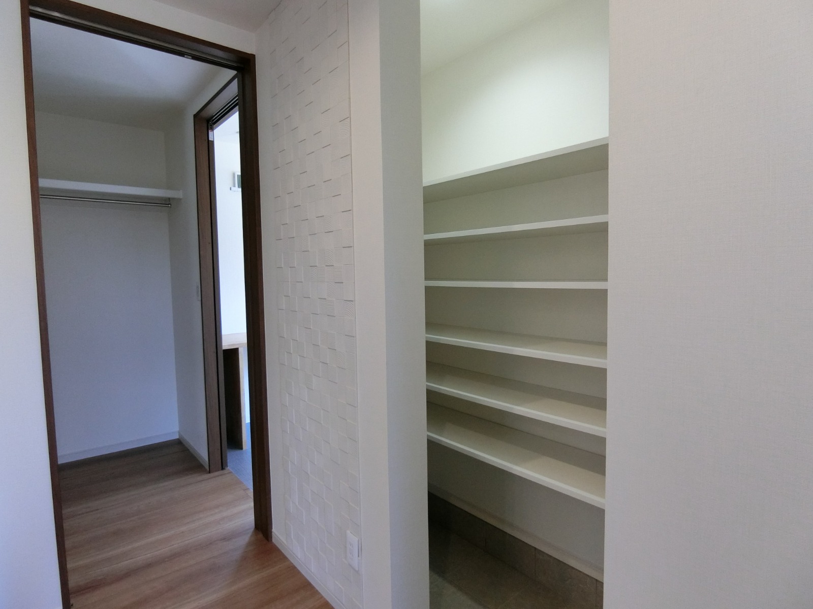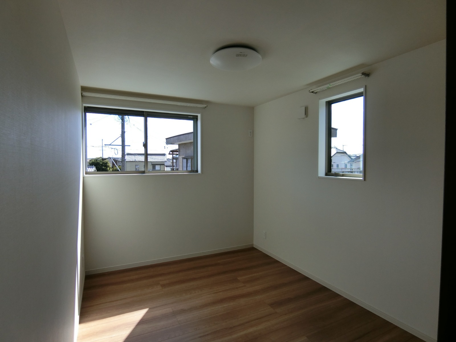 二階廊下の天井には、小屋裏収納への天井収納式アプローチ階段のハッチ